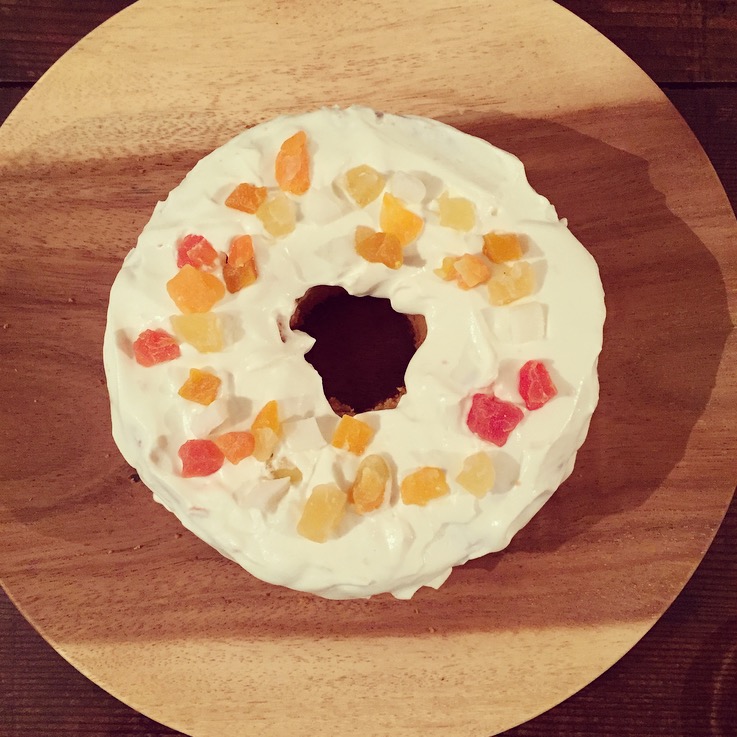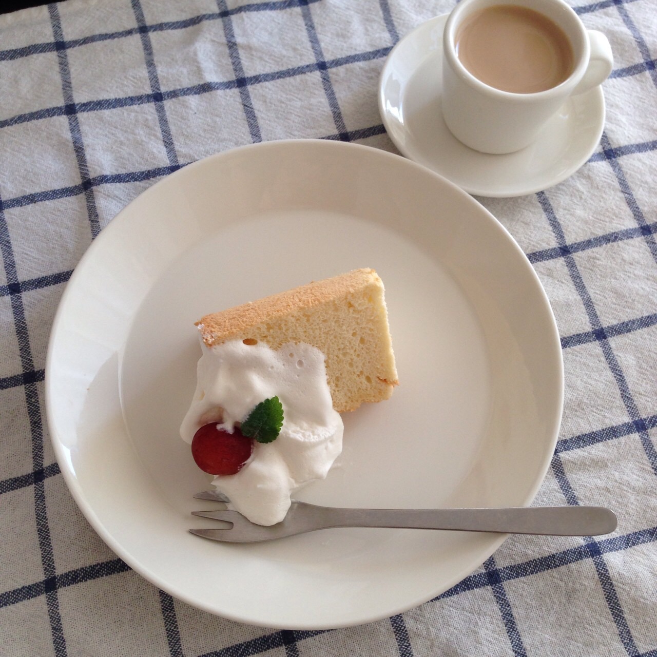 週末には最近お菓子作りにハマっているパパがシフォンケーキを焼いてくれました。